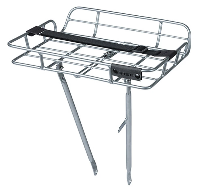 Le Basil Portland Front Carrier High est un élégant porte-roue avant en aluminium de style vintage, adapté au sac Portland. En plus du sac Portland, d’autres sacs de dimensions similaires peuvent également être placés sur ce support frontal. Une sangle amovible est fixée au support avant pour vous aider à maintenir votre sac ou votre panier en place.