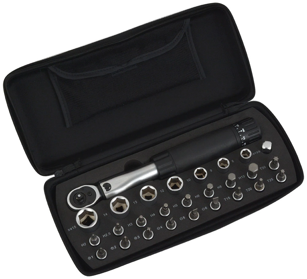 Les clés dynamométriques sont des outils de précision qui permettent de serrer les assemblages vissés avec la force exacte recommandée ou prescrite par le fabricant. Le couple de serrage correct, exprimé en newton-mètres (Nm), doit être respecté, en particulier pour les cadres et les pièces rapportées en carbone. Mais le couple de serrage correct garantit également pour tous les autres matériaux que le raccord vissé ne sera pas surchargé.