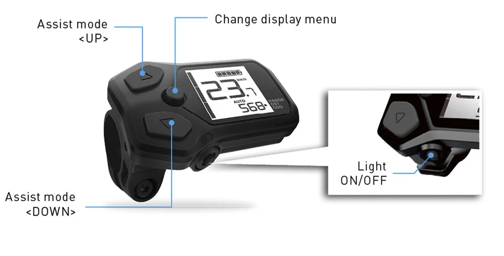Avec un menu simple et compact, le compteur de vélo SC-E5003 offre un écran clair qui illustre les différentes fonctions du système SHIMANO STEPS E-Bike. L’appareil fait également office de bouton d’assistance, permettant au cycliste de régler le niveau d’assistance à l’aide de grandes touches faciles à trouver.